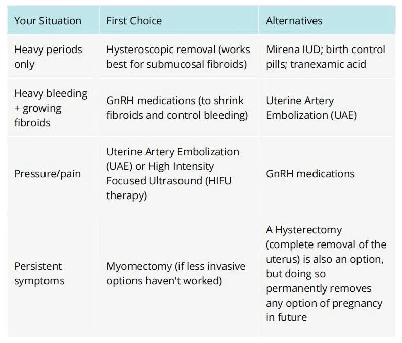 Ultimately, when it comes to fibroids there’s no one-size-fits-all approach: talk with your doctor if your fibroids are affecting you and match your treatment to your life plans.