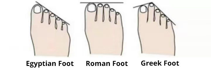 'Roman' Foot: The first three toes are similar in length, resembling a square shape.
