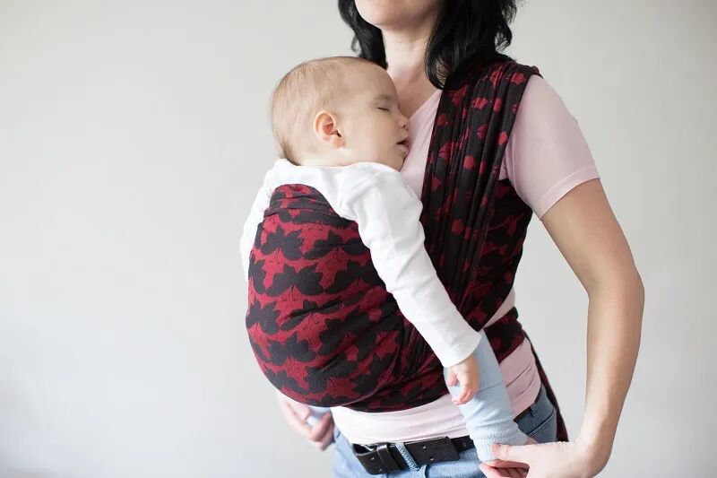 Certain baby carriers or slings that hold the baby’s legs together or in a dropped down position
